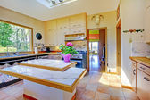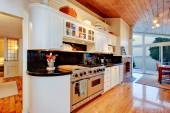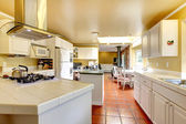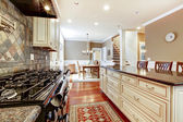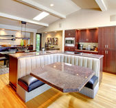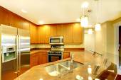 Nowa kuchnia luksus z lekka cbainets i ciemna wyspa.