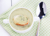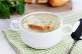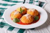Truskawka zupa z włoski ryż smażone kulki arancini.