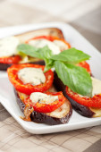 grillowane warzywa na płytce niebieski