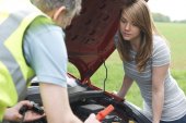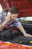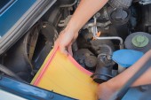 Zbliżenie: kobieta sprawdzanie poziomu oleju silnika samochodu na bagnet
