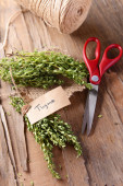 Gałązki rozmarynu z liny i nożyczki