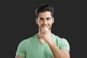 przystojny mężczyzna na szarym tle