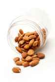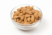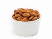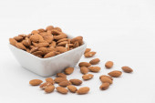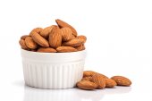 Migdałowy nasion w biały kubek na białym tle