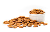 Migdałowy nasion w biały kubek na białym tle