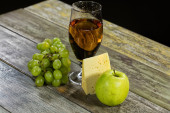 Martwa natura z serów i wina