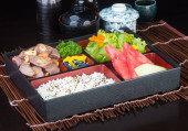 Zdjęcie "dania kuchni japońskiej. lunch box set na tle" może być wykorzystywane do celów osobistych i komercyjnych zgodnie z warunkami zakupionej licencji Royalty-free. Obraz jest dostępny do pobrania w jakości wysokiej rozdzielczości do 5760x3840.