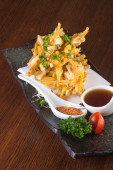 dania kuchni japońskiej. grillowane ryby powłoki na tle