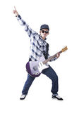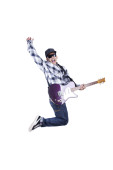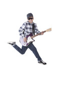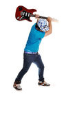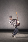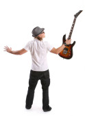 człowiek gra na gitarze