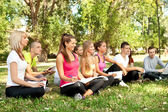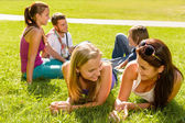 Grupa nastolatków leżącego na ziemi w parku