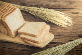 szklanka mleka i pieczywo pełnoziarniste na deski drewniane