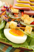 Zdjęcie "Sałatka ze szpinakiem, jajkiem i szynką" może być wykorzystywane do celów osobistych i komercyjnych zgodnie z warunkami zakupionej licencji Royalty-free. Obraz jest dostępny do pobrania w jakości wysokiej rozdzielczości do 5760x3840.