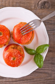 Zdjęcie "pomidory wypchane na białym talerzu." może być wykorzystywane do celów osobistych i komercyjnych zgodnie z warunkami zakupionej licencji Royalty-free. Obraz jest dostępny do pobrania w jakości wysokiej rozdzielczości do 5760x3840.