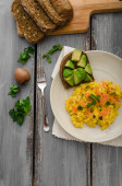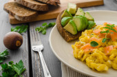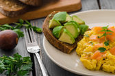 Zdjęcie "Łososia jajecznicę i awokado tosty" może być wykorzystywane do celów osobistych i komercyjnych zgodnie z warunkami zakupionej licencji Royalty-free. Obraz jest dostępny do pobrania w jakości wysokiej rozdzielczości do 5760x3840.
