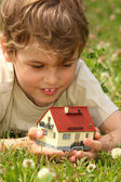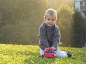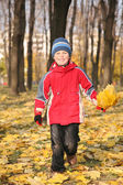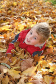 chłopiec w kurtka jest na plac zabaw w parku jesień