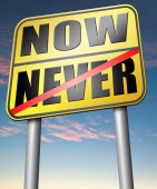 Zdjęcie "teraz, albo nigdy nie znaków drogowych" może być wykorzystywane do celów osobistych i komercyjnych zgodnie z warunkami zakupionej licencji Royalty-free. Obraz jest dostępny do pobrania w jakości wysokiej rozdzielczości do 5760x3840.