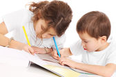 kaukaski chłopca i dziewczyny są malarstwo w notebookach, bo pół