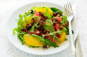 Zdjęcie "Orange i pomgranate sałatka" może być wykorzystywane do celów osobistych i komercyjnych zgodnie z warunkami zakupionej licencji Royalty-free. Obraz jest dostępny do pobrania w jakości wysokiej rozdzielczości do 5760x3840.