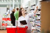 kobieta Farmaceuta posiadający komputer typu tablet