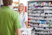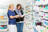 kobieta Farmaceuta posiadający komputer typu tablet