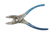 stare zardzewiałe szczypce z niebieski uchwyt na białym tle.