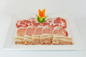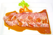 Wysokiej klasy Hida wagyu wołowiny na białym tle w plastrach
