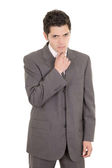 ustalenie jego krawat, na białym tle nad biały człowiek biznesu