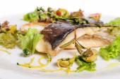 pieczone złotoryb z owoców morza i Fasolka szparagowa