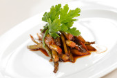 pieczone złotoryb z owoców morza i Fasolka szparagowa