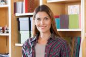kobieta zabarwia ustauśmiechający się kobieta z rękami skrzyżowanymi