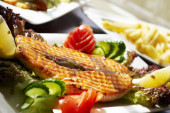 Zdjęcie "mięso wieprzowe z grilla z warzywami" może być wykorzystywane do celów osobistych i komercyjnych zgodnie z warunkami zakupionej licencji Royalty-free. Obraz jest dostępny do pobrania w jakości wysokiej rozdzielczości do 5760x3840.