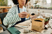 Zdjęcie "Młoda kobieta sortuje swoje ubrania do recyklingu, przyjmując ekologiczne nawyki." może być wykorzystywane do celów osobistych i komercyjnych zgodnie z warunkami zakupionej licencji Royalty-free. Obraz jest dostępny do pobrania w jakości wysokiej rozdzielczości do 5760x3840.