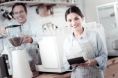 Zdjęcie "Pracowników płci męskiej i żeńskiej w kawiarni " może być wykorzystywane do celów osobistych i komercyjnych zgodnie z warunkami zakupionej licencji Royalty-free. Obraz jest dostępny do pobrania w jakości wysokiej rozdzielczości do 5760x3840.