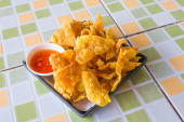głęboko smażony wonton na biały danie z sosem śliwkowym