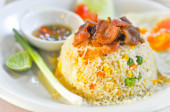 tradycyjne jedzenie Tajlandia: smażony ryż z chili dip, wieprzowina oraz s