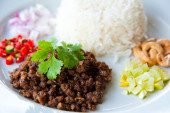 gorący ryż z oliwek solone, zielony zioła i orzechy: tradycja pyszne jedzenie