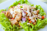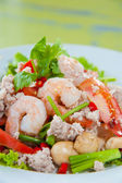 Tajski ubrany pikantna sałatka z bas, zielony zioła i orzechy: pyszne jedzenie