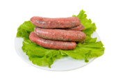 kiełbasy polowanie na białym talerzu jest na białym tle biały b