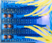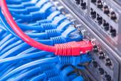 strzał kabli sieciowych i serwerów w centrum danych technologii