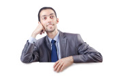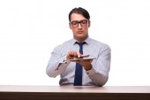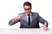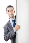 młody biznesmen z biały deska