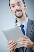 biznesmen, pracując na komputerze typu tablet