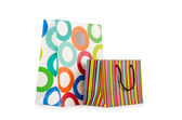 Koncepcja zakupów z torbą na białym