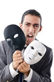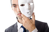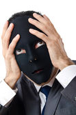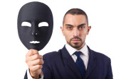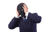 Koncepcja szpiegostwa przemysłowego z zamaskowanym biznesmenem