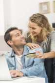 Zdjęcie "para przy użyciu karty kredytowej do sklepu online" może być wykorzystywane do celów osobistych i komercyjnych zgodnie z warunkami zakupionej licencji Royalty-free. Obraz jest dostępny do pobrania w jakości wysokiej rozdzielczości do 5760x3840.