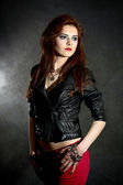 Modna kobieta na czerwonym tle
