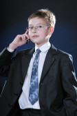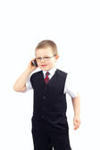 chłopiec w oficjalnych dresscode z telefonu komórkowego