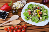 świeże warzywa na drewnianym tle