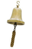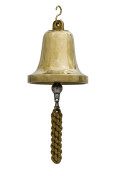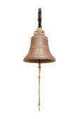 Antyczny dzwon okrętowy mosiądzu z lina na białym tle