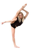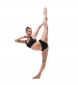 Uśmiechnięta blondynka pozowanie robi pionowego podziału