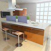 3D renderowania klasyczna jadalnia i kuchnia