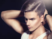Zdjęcie "Moda model młody mężczyzna portret." może być wykorzystywane do celów osobistych i komercyjnych zgodnie z warunkami zakupionej licencji Royalty-free. Obraz jest dostępny do pobrania w jakości wysokiej rozdzielczości do 5760x3840.